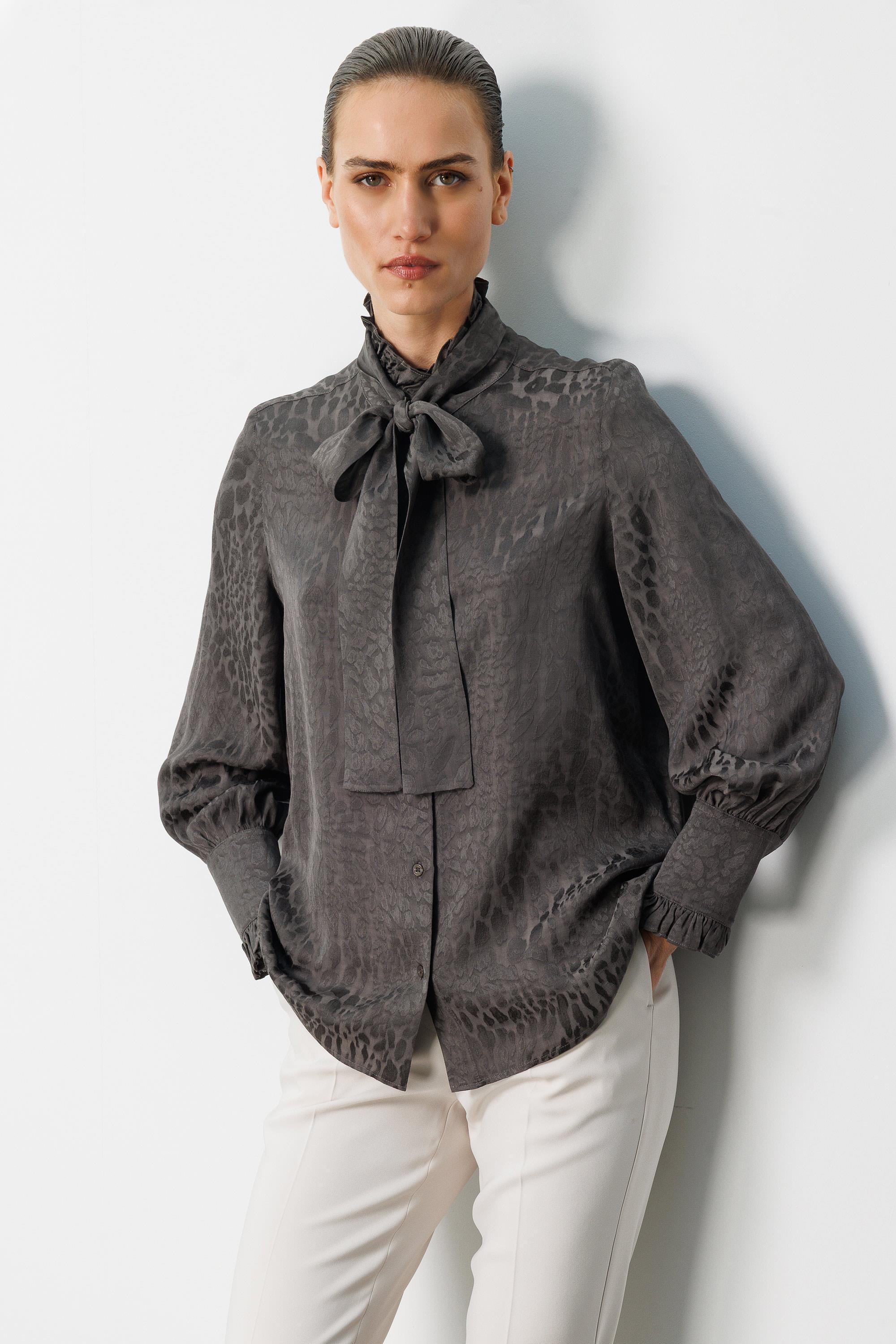 Fularlı Jakarlı Bluz